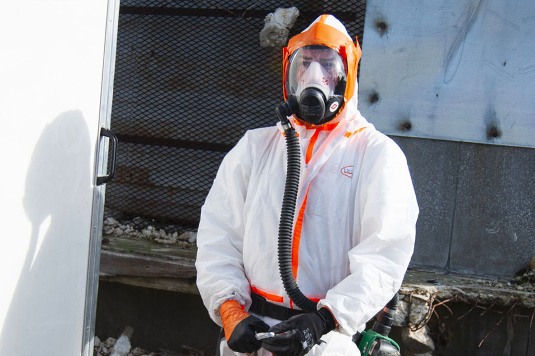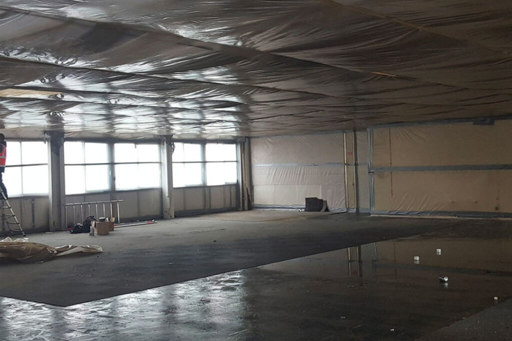 • Retrait de 2500 m² de dalles de sol et colle amiantée.